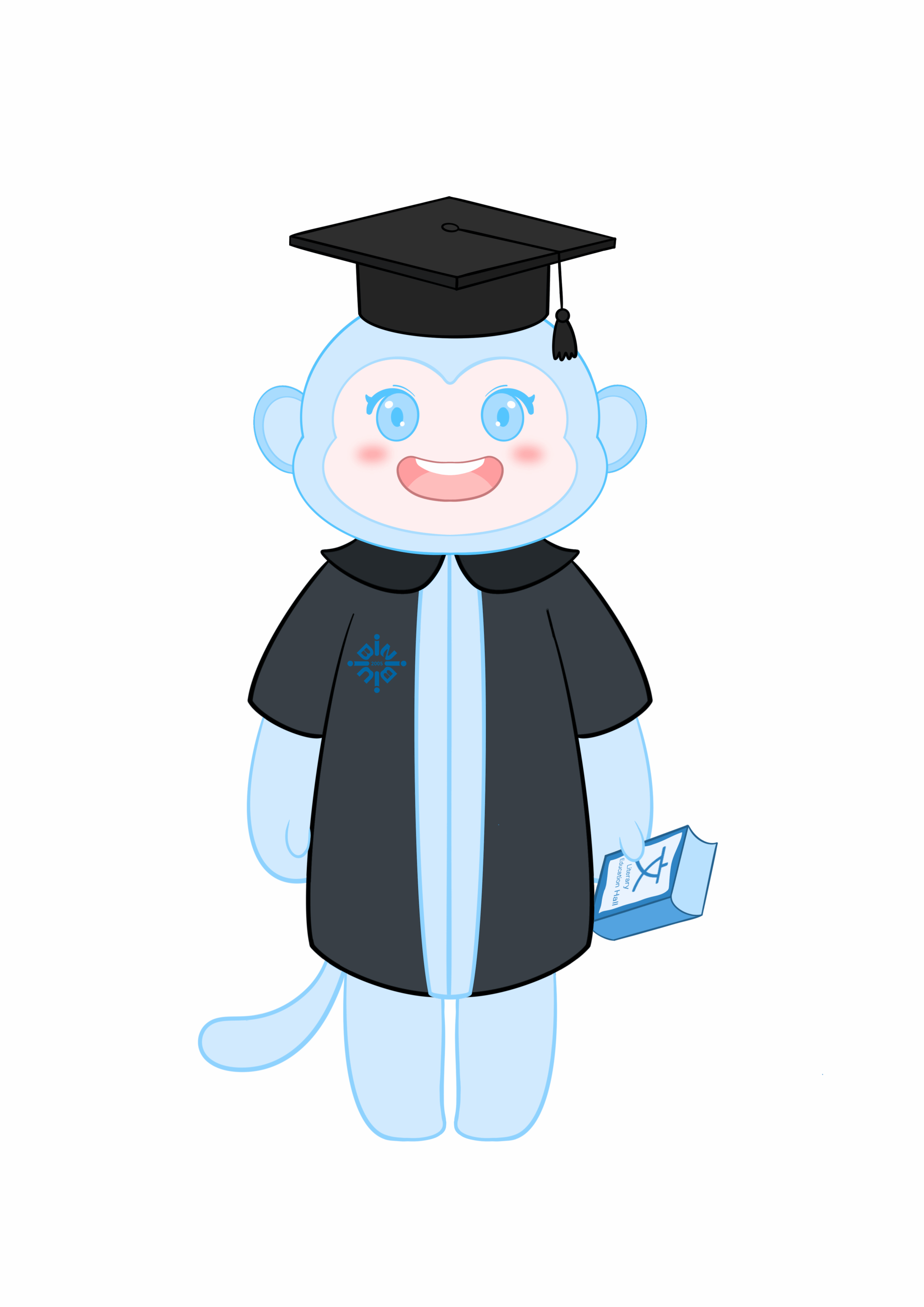 苑舍吉祥物:开朗好学,头戴学士帽,身穿苑舍袍的文雅苑小猴子