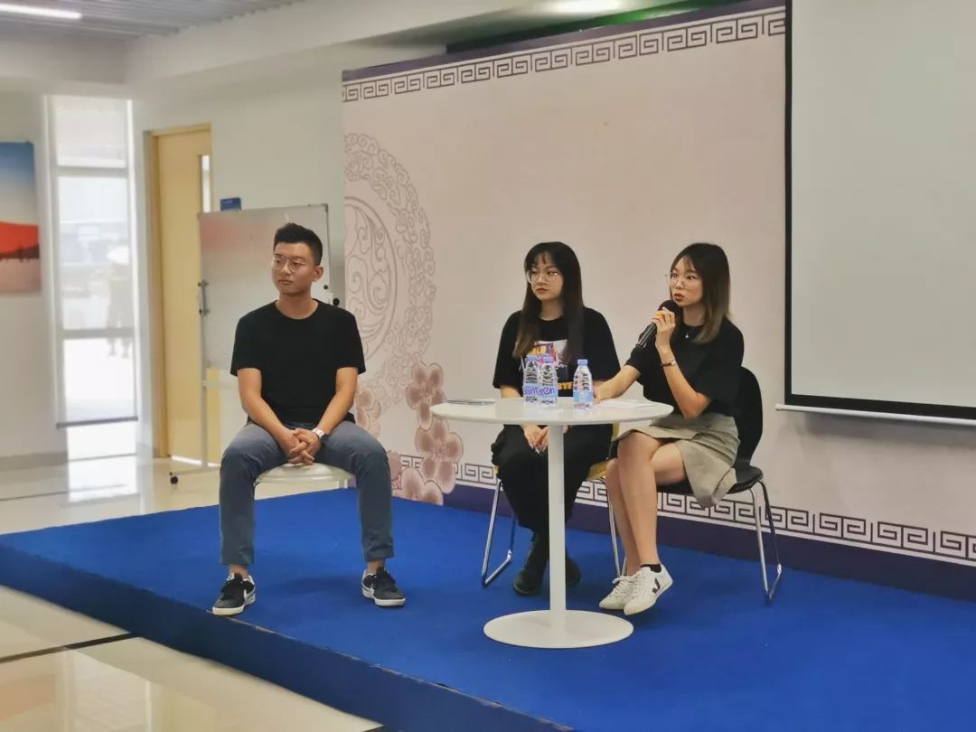 分别是来自大四CTV专业的梁言学姐、大四AE专业的梁天时学长和大三ACCT专业的赵旖琪学姐。