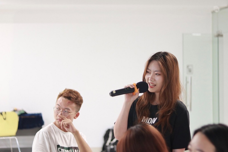 紧接着,迎新会迎来了第一个小高潮——K歌接龙。随着屏幕上一首又一首耳熟能详的歌曲接连出现,台下的同学们按捺不住激动的心情、纷纷举手抢答。每次抢答都让大家认识了一位又一位唱歌很好的同学,也相信那些因为害羞没有举手的同学下次会更勇敢秀出自我。