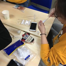 每组同学分成两部分,一部分消毒唇膏管,一部分处理蜜蜡。
