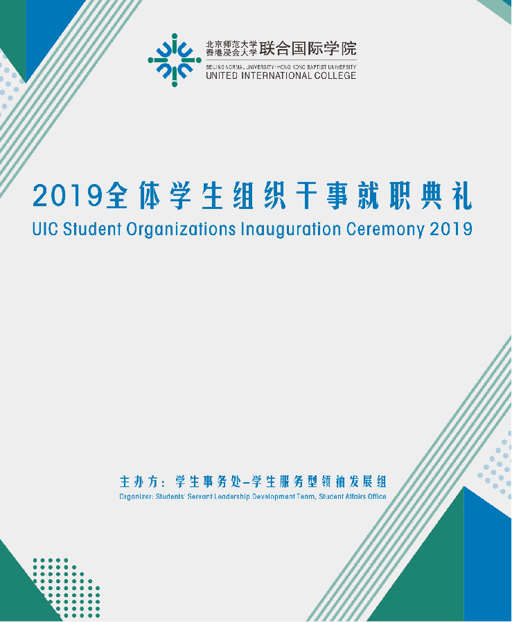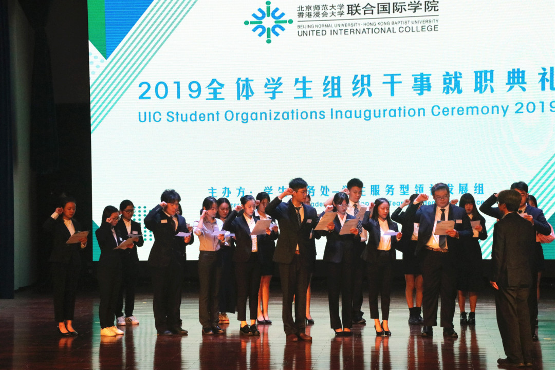 各位UIC的小伙伴们一年一度的全体学生组织干事就职典礼于2019年10月16日5:30pm在北师港浸大演艺厅隆重举行有171名学生参加了典礼。