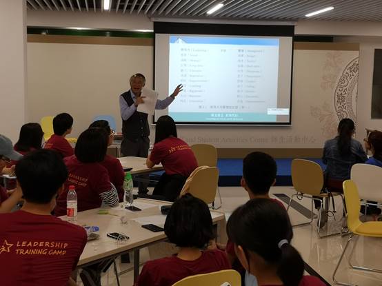 在开营前的任务中,以小组为单位对选定的活动进行策划且进行展示的任务可谓是最具有挑战性的。其中,B,C和F组为策划运动会嘉年华;而A,D和E组负责的是策划粤港澳大湾区高校学生领袖研讨会。在经过一番激烈的角逐后,F组和E组的策划案和展示得到了评委们的一致赞同,分别获得第一名。之后,来自学生事务处的副处长邝杰英老师形象生动地向营员们分享了自己认为的领导力,并为他们推荐了许多优秀的书籍。