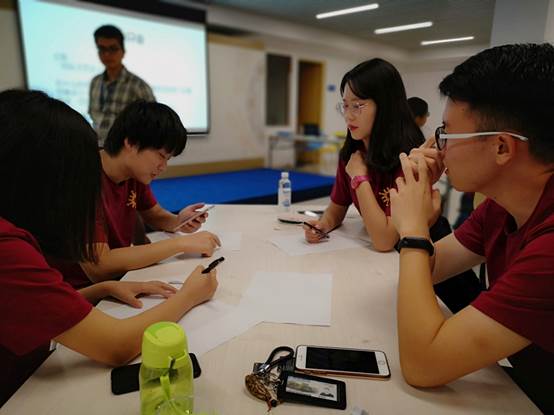 11月4日上午,来自学生事务处的Jeffrey老师为营员们带来了“沟通与如何开会”的工作坊,并让大家做一个沟通的体验游戏。在游戏过后,Jeffrey老师让营员们以小组为单位进行反思总结。营员们一致认为,要想实现良好的沟通,必须要给对方进行反馈。