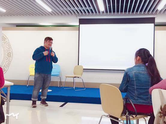 此次培训营将35名同学分为6组。在T4的师生活动中心里,来自大二的数据科学与大数据技术专业的赵浩嵩同学为大家进行了团建。