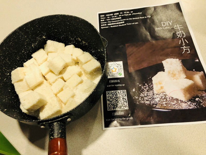 9月26日,博雅苑V23二楼的学长舍堂导师举办了DIY牛奶小方甜品的活动,让同学们通过自己动手制作甜品,不仅能够增进同学间的交流,也能一饱口福呢~活动在同学们的相互帮助与合作下,顺利完成,同学们都对自己的甜品成果十分满意!下面让我们一起回顾活动有趣的瞬间吧!