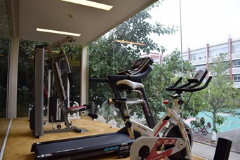 除了办公区域,这里还有健身空间、洽谈室等。顶楼还有一个视野开阔的小酒吧。