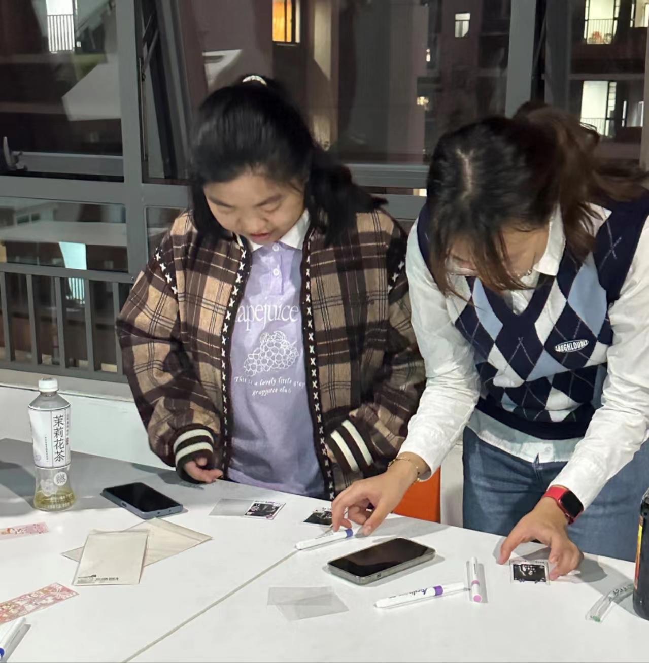 每一位同学都投入地制作属于自己独特的拍立得照片涂鸦艺术品。
