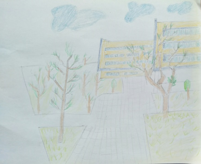 这幅画作叫《图书馆》。我画的图书馆的一角和天空,我的画工不太好,哈哈哈哈。但是我真的好想念学校的图书馆,有超快的网络,超多的学习资源,最主要的氛围好!!!! 我现在在家,连个FYP的资料都查不到,太悲惨了,5555,求你快点开学!!!(参赛者:苏云鹤)
