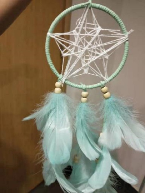 由于过程比较复杂,在缠线和交叉的过程中因为很多原因都不能很好的完成,但同学们相互讨论借鉴经验,借助教程,很快就摸索出了方法,顺利完成了捕梦网的制作。还有的同学因为制作不符合自己的想法,反复调整以达到自己最满意的效果。