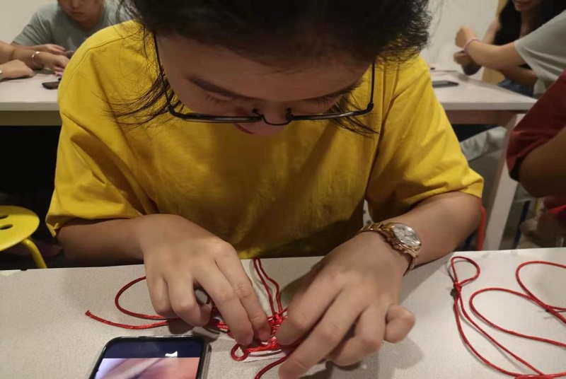 首先,由学长舍堂导师分配材料并教导同学如何编制中国结与手链。跟随着学长舍堂导师,同学们投入到学习中国结与手链编织的之中。中国结DIY活动丰富了同学们的日常生活。有同学们感慨,UIC是一所并不局限于学习专业知识的学校。在这所学校中,遇到了一大批成绩好,同时多才多艺的同学。