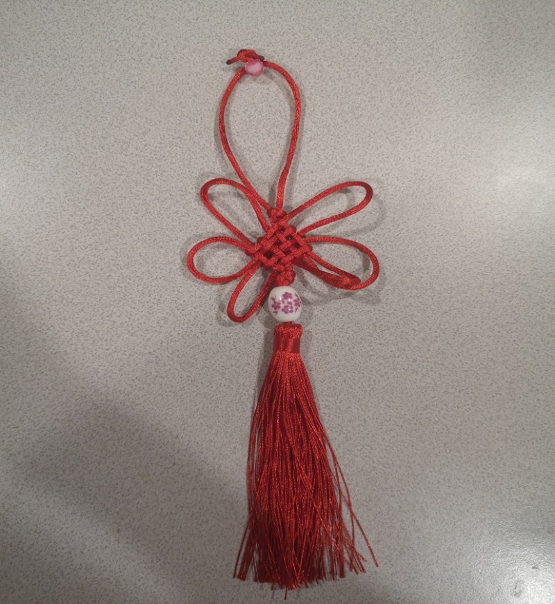 中国结作为中国特有的手工编织工艺品,代表着团结、幸福、平安。在活动的最后,学长舍堂导师们还帮同学将中国结与手链寄送给他们的父母,通过这种方法,让同学们给他们远方的父母送上祝福。